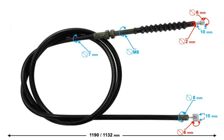Dokładne wymiary oraz zakończenia linki podane na zdjęciu. Przed zakupem zalecamy porównanie wymiarów oraz końcówek z oryginalną linką, zdarzały się różne modyfikacje nawet w pojazdach tego samego typu.
