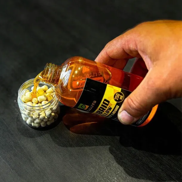 HYBRID to seria liquidów których głównym założeniem przy ich tworzeniu było uzyskanie atrakcyjnej kompozycji zapachowej w połączeniu z właściwościami barwiącymi. Właściwości barwiące pozwalają na dostosowanie koloru zanęt i przynęt do upodobań ryb. Unikalny aromat jest szczególnie lubiany przez duże ryby i pomaga selekcjonować okazy. Liquidy HYBRID można stosować z wszelkiego rodzaju pelletami, zanętami, przynętami, kukurydzą, itp.