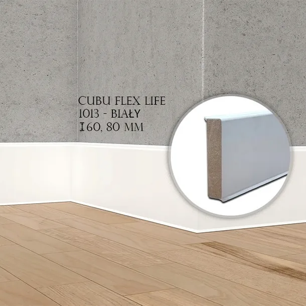 Listwa Cubu flex life z rdzeniem HDF, otoczonym bezchlorowym polimerem PP/TPE, z elastycznymi krawędziami w górnej i dolnej części doskonale uszczelniającymi drobne szczeliny.