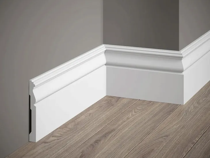 Listwa przypodłogowa MD095 to elegancki profil o charakterystycznym designie przyciągającym wzrok. Listwa jest w pełni wodoodporna, dzięki czemu może być montowana w pomieszczeniach o dużym poziomie wilgotności jak łazienki czy kuchnie. MD095 skutecznie odbija promienie słoneczne, nie powodując zażółceń, odbarwień czy zmian w strukturze materiału. Wysokie parametry techniczne wraz z zastosowaną technologią ScratchShield sprawiają, że listwa przypodłogowa jest wysoce odporna na działanie czynników zewnętrznych jak zarysowania czy uderzenia. Listwa posiada specjalną przestrzeń dedykowaną do ukrywania nieestetycznego okablowania domowego. Została zabezpieczona wysokiej jakości primerem, który wygładza listwę oraz przygotowuje ją na przyjęcie kolejnych warstw farby wodnej.