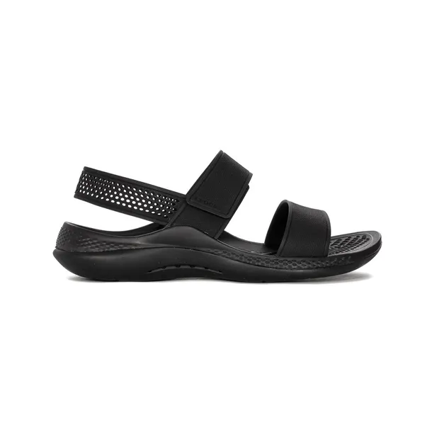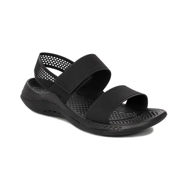 Sandały damskie renomowanej marki Crocs. Wykonane z opatentowanego przez markę tworzywa Croslite, w kolorze czarnym, który idealnie wkomponuje się w letnie klimaty. Świetnie trzymają się stopy, sprawdzają się podczas bardzo wysokich temperatur. Bardzo lekkie, wytrzymałe, wodoodporne i łatwe w pielęgnacji, wystarczy czysta woda. Wkładka z technologią Iconic Crocs Comfort - wyposażona w wypustki masujące stopy. Model ma wysokość 3 centymetrów. Prezentowany model należy do jednych z najsłynniejszych produktów Crocs. Sandały zapinane są na rzep co ułatwi dostosować sandał do tęgości stopy. Praktyczne, idealnie sprawdzą się w mieście, na spacerze nad morzem czy wycieczce do lasu.