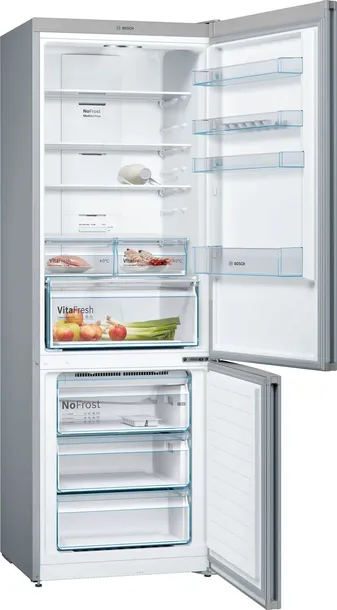 Ekstra duża chłodziarko-zamrażarka marki Bosch o szerokości 70 cm, to idealne rozwiązanie dla każdego, kto potrzebuje dużo miejsca na perfekcyjne przechowywanie żywności. Większe wnętrze ułatwia lokalizowanie produktów i zapewnia maksymalną elastyczność. Ponadto chłodziarko-zamrażarki marki Bosch w rozmiarze XXL mogą być umieszczane we wnękach oraz stawiane bezpośrednio przy ścianach. Doskonały wybór dla dużych rodzin i zwolenników porządku w chłodziarce.