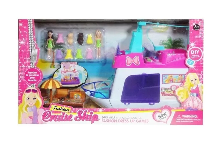 Plastikowy jacht dla lalki razem z zestawem wypoczynkowym zabierze Twoją lalkę w niejedną niezapomnianą podróż. Jacht posiada ruchome elementy takie jak drzwi oraz ławkę wypoczynkową na górze statku. Ponadto w zestawie zestaw wypoczynkowy dla lalek.