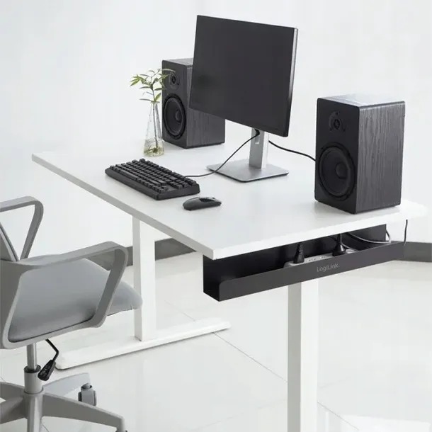 - najważniejsze cechy: Organizacja kabli: elegancko ukrywa wszystkie kable pod biurkiem Szczególnie nadaje się do biurek stojących Minimalistyczny design Trwała konstrukcja o nośności do 5 kg Łatwa instalacja za pomocą śrub (rozmiar: ST 5,5 x 16) Wszechstronne opcje montażu