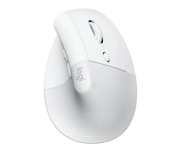 Logitech Lift for Business. Układ: Po prawej stronie, Projekt pionowy. Technologia wykrywania ruchu: Optyczny, Interfejs urządzenia: RF Wireless + Bluetooth, Rozdzielczość ruchu: 4000 DPI, Rodzaj przycisków: Wciskane przyciski, Liczba przycisków: 4, Typ przewijania (scroll type): Koło. Źródło zasilania: Baterie. Kolor produktu: Biały