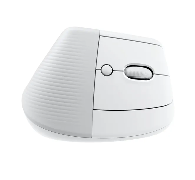 Logitech Lift for Mac. Układ: Po prawej stronie, Projekt pionowy. Technologia wykrywania ruchu: Optyczny, Interfejs urządzenia: RF Wireless + Bluetooth, Rozdzielczość ruchu: 4000 DPI, Rodzaj przycisków: Wciskane przyciski, Liczba przycisków: 6, Typ przewijania (scroll type): Koło. Źródło zasilania: Baterie. Kolor produktu: Biały