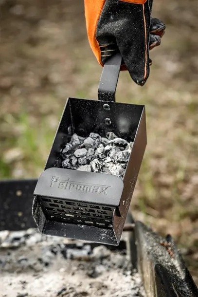 Łopata do węgla Petromax to praktyczne akcesorium, idealne do szybkiego napełniania grilli i kominków węglem drzewnym lub brykietami, a także do ich łatwego czyszczenia. Wytrzymała łopata ze stali malowanej proszkowo została wyposażona w wysokie krawędzie boczne, co pozwala na transport dużej ilości paliwa. Dzięki temu narzędziu możesz utrzymać czystość i porządek w swojej kuchni na świeżym powietrzu.