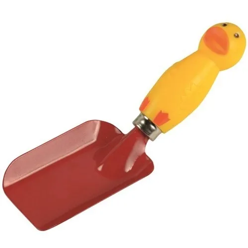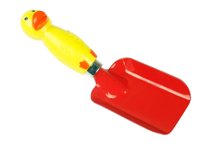 Łopatka posiada oryginalną rączkę w formie kaczuszki. Taki wygląd sprawia, że po narzędzie chętnie sięgają nawet bardzo małe dzieci.