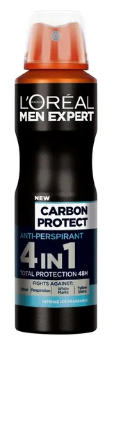 Męski antyperspirant w sprayu L'Oréal Men Expert Carbon Protect działa przeciw nieprzyjemnemu zapachowi i chroni przed białymi i żółtymi śladami na ubraniach. Większość dezodorantów zawodzi w codziennych sytuacja powodując utratę poczucia komfortu. Dlatego specjaliści z L'Oréal Paris wykorzystali zaawansowaną technologię zawierającą substancje aktywne, które działają wielofunkcyjnie zapewniając skuteczną ochronę i długotrwałą świeżość. Specjalistyczne połączenie rewolucyjnej technologii w dezodorantach Men Expert zapewnia poczucie komfortu w męskim świecie, niezależnie od warunków i sytuacji.