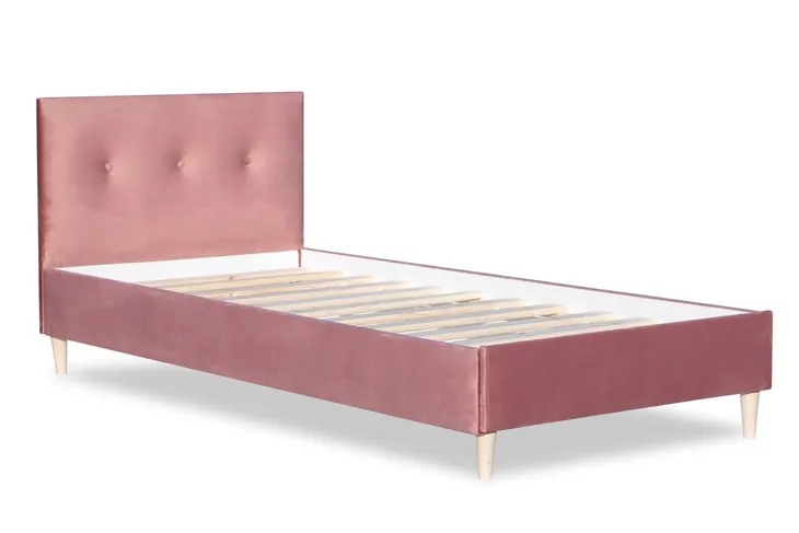 Szare łóżko tapicerowane 90x200cm ze stelażem.