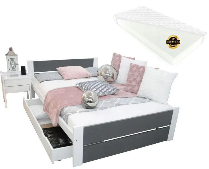 Łóżko LEA 120x200 białe - szare, + stelaż, MATERAC PIANKOWY