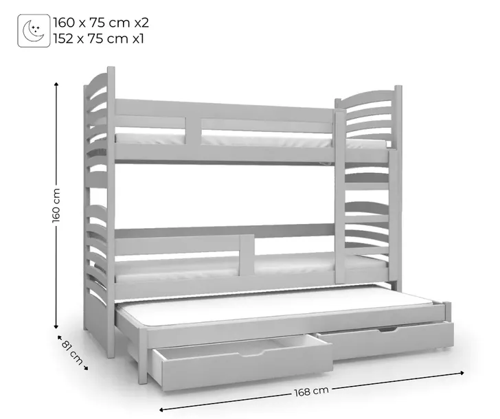 Łóżko piętrowe OLEK MINI 3 osobowe 160x75 MATERACE gratis