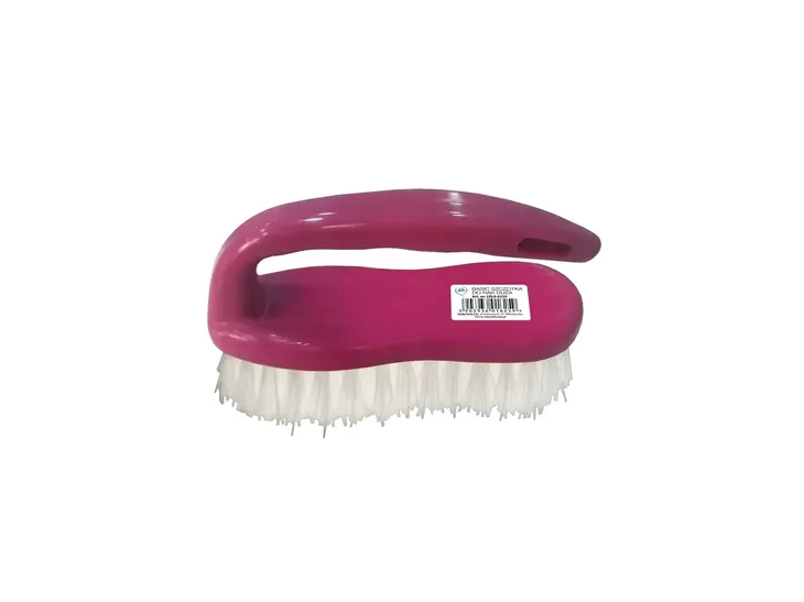 Szczotka do czyszczenia rąk i paznokci posiada wyprofilowany uchwyt ułatwiający trzymanie. Szczotka posiada syntetyczne włosie w kolorze szarym. Trzy warianty kolorystyczne do wyboru: różowy, zielony, niebieski. Ilość: 1 sztuka.