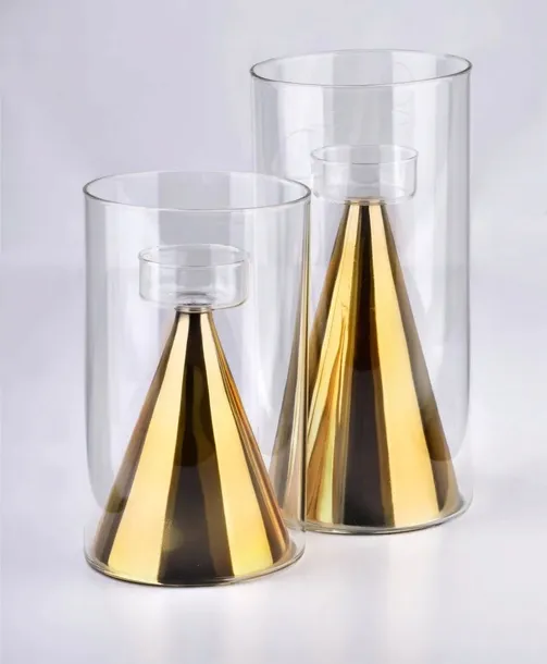 Świecznik szklany z serii RITA GOLD . Jest to nowa odsłona klasycznego świecznika na tealight lub świece. Wyjątkowa forma sprawia, że nawet bez świecy wewnątrz ozdabia dom perfekcyjnie. Świetnie sprawdzi się na stole podczas kolacji, ale przede wszystkim jako element dekoracyjny salonu, sypialni lub jadalni. Wymiary: 12x12x25cm