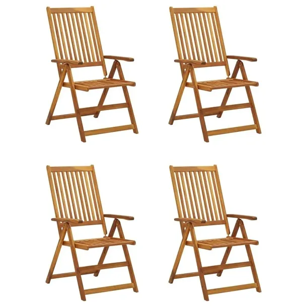 Te krzesła ogrodowe wykonano z litego drewna akacjowego, wykończonego olejem, które jest twardym drewnem o zwartym usłojeniu. Charakteryzuje się ono wytrzymałością na obciążenia oraz na upływ czasu. Za sprawą olejowanej powierzchni meble można łatwo wyczyścić przy pomocy wilgotnej ściereczki. Ponadto ich oparcia są regulowane w 5 pozycjach, dzięki czemu zawsze znajdziesz najwygodniejsze ustawienie dla siebie. Oprócz tego dołączone poduszki zapewniają najwyższy komfort podczas wypoczynku lub posiłku. Każda z nich zawiera gumkę i dwa zestawy sznurków, aby przymocować je dobrze do krzeseł.