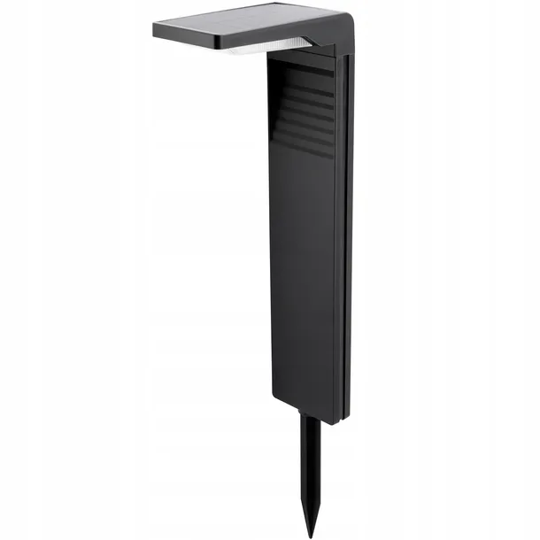 Kluczowe dane techniczne • Materiał: Poliwęglan (PC), ABS • Kolor: Czarny • Wysokość lampy: 58 cm • Długość szpikulca: 18.2 cm • Temperatura barwowa: 4000K (neutralna biała) • Klasa szczelności: IP44 • Źródło światła: 30 diod LED • Trwałość: 10 000 godzin • Pojemność akumulatora: 2200 mAh • Czas działania: Do 8 godzin • Czas ładowania: Do 8 godzin • Panel solarny: Monokrystaliczny (Mono-Si) • Czujnik zmierzchu: Tak • Sposób montażu: Wbijany • Włącznik ON/OFF: Tak • Wymiary: 88 x 160 x 48 mm • Certyfikaty: CE, RoHS, UKCA