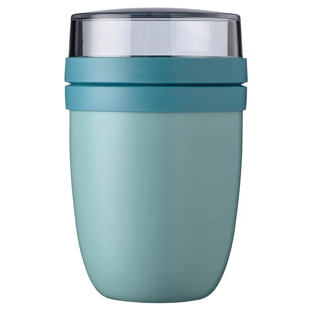 Lunchpot z kolekcji Ellipse marki Mepal składa się z dwóch części: pojemnika termicznego o podwójnych ściankach oraz przeźroczystej pokrywy. Nie musisz się martwić o brak możliwości podgrzania obiadu, jeśli zabierzesz go ze sobą do szkoły, pracy lub na nocną zmianę. Ten pojemnik utrzymuje ciepło na bardzo długo (zupę ciepłą do 10h,a jogurt zimny nawet do 16h!). Dzięki niemu nawet po wielu godzinach zjesz ciepły posiłek, niezależnie od tego gdzie jesteś. Wykonany ze stali nierdzewnej oraz tworzywa. Pojemnik jest niezwykle szczelny, chłodny i suchy od zewnątrz, niezależnie od tego co w nim przechowujesz. Dodatkowo jego kompaktowy rozmiar sprawi, ze bez problemu wrzucisz go do plecaka czy torebki.