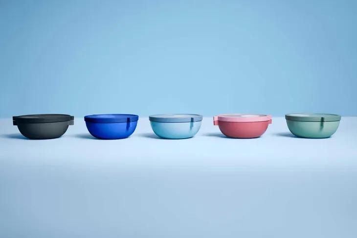 Pojemnik z kolekcji Vita holenderskiej marki Mepal przypadnie do gustu prawdziwym miłośnikom zdrowego odżywiania. Idealny będzie również dla mam, które przygotowują zdrowe posiłki dla dzieci do szkoły czy na wycieczki. Miska posiada dwa dodatkowe wyjmowane pojemniki Bento oraz tacę, które świetnie oddzielają poszczególne składniki posiłków. Naczynie oferuje w sumie aż pięć niezależnych przegródek. Zyskujesz nowe możliwości kompozycji potraw, a mieszając dressing z sałatką tuż przed spożyciem, wszystkie składniki pozostaną chrupiące i świeże. Ogromnym atutem tego naczynia, jest zakręcana pokrywa, która jest bardzo szczelna. Zabierając miskę Vita w podróż, nie trzeba się obawiać o wylanie zawartości, a jedzenie zachowa swój aromat. Jest to również świetny wybór dla osób lubiących spożywać lunch na ciepło – jedzenie w misce Vita można podgrzewać w kuchence mikrofalowej, należy pamiętać jedynie, aby pokrywę w czasie podgrzewania luźno położyć na misce.
