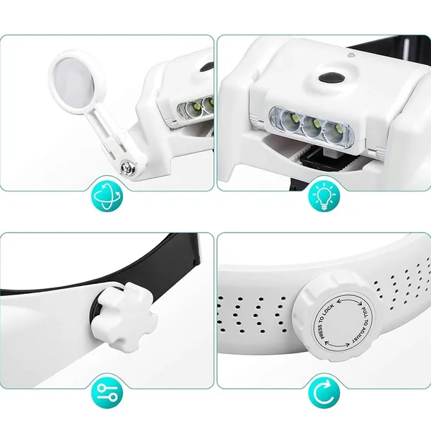 - 📦Lupa nagłowna z 3 diodami LED*1
