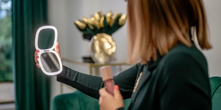 Gdy przygotowujesz się do imprezy lub ważnego spotkania możesz zwiększyć moc podświetlenia, aby uzyskać jasne i precyzyjne odbicie, które pomoże w dokładnym nałożeniu makijażu i podkreśleniu najdrobniejszych detali. Podczas codziennej pielęgnacji światło może być nieco mniej intensywne, abyś nie musiała nadwyrężać oczu. Wystarczy dłużej przytrzymać dotykowy przycisk, aby płynnie wyregulować jasność i perfekcyjnie dostosować ją do bieżących potrzeb.
