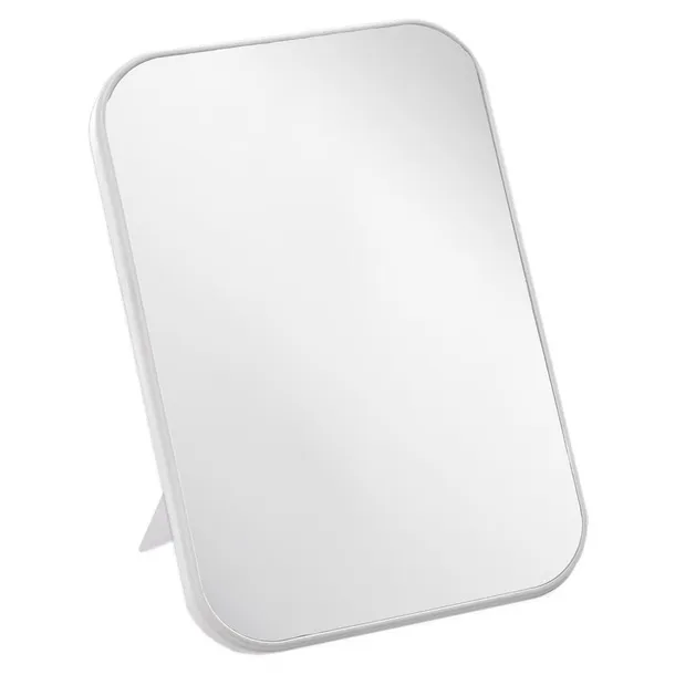 KOSMETYCZNE - Praktyczne, jednostronne lusterko na stojaku. Lusterko do postawienia na nóżce lub do zawieszenia na ścianie. Lustro ma prostokątny kształt i wymiary 14,5 x 21,5 cm.
