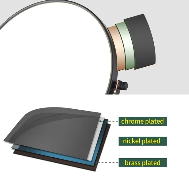 - 【Wybrany najwyższej jakości materiał】 Rama tego stojącego lusterka kosmetycznego wykonana jest z wysokiej jakości mosiądzu. Wysoka wytrzymałość i wysoka twardość. Wiadomo, że jest bardziej odporna na zużycie niż stal nierdzewna i bardziej odporna na rdzę niż żelazo. Mocna i trwała. powierzchnia lustra wykonana jest ze szkła posrebrzanego, pokryta folią Anti-Fog, która zapobiega przywieraniu gorącej pary wodnej do powierzchni lustra.Zawsze wyświetla wyraźne odbicia.