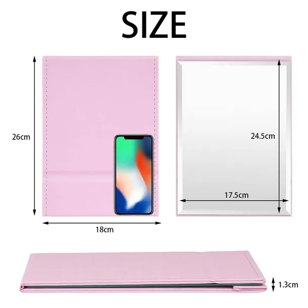 - ?[Idealny rozmiar] Całkowity rozmiar to 18 * 26 cm, a szkło lusterka ma 24 * 17 cm. Składany design ułatwia transport i przechowywanie, idealny do podróży lub użytku w domu.