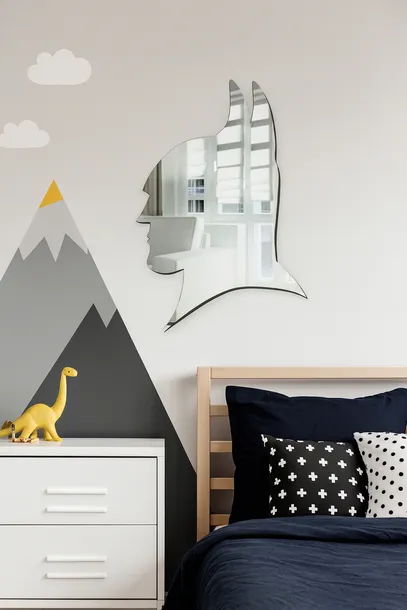 Bezpieczeństwo – nietłukące lustro akrylowe z gładkimi krawędziami po cięciu laserowym, idealne do pokoju dziecka.