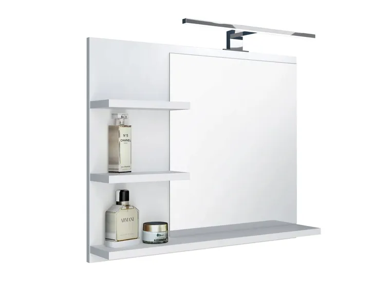 Modne i funkcjonalne lustro z półkami i oświetleniem LED białe - LEWE