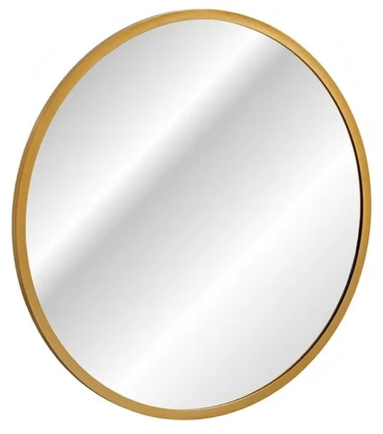 Lustro wiszące, okrągłe, LED, Hestia, 60 cm, złoty. Optymalnych rozmiarów lustro w nowoczesnym stylu, które łatwo dopasuje się do różnych stylów wnętrza. Lustro świetnie wygląda zawieszone nad innymi meblami, np. szafką pod umywalkę.