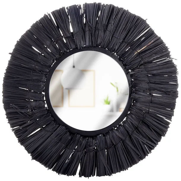 NATURALNA RAMA - Rama lustra została wykonana z rafii w kolorze czarnym, która tworzy niezwykłe efektowne obramowanie. Lustro zapewnia czyste i wyraźne odwzorowanie obrazu.