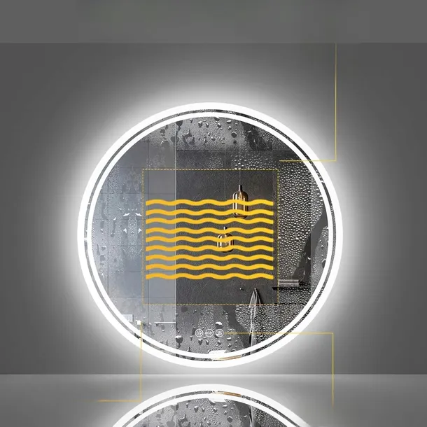 przyciemniane okrągłe lustro 80 cm jest wyposażone w 3 przyciski dotykowe do sterowania jasnością, kolorem światła i funkcją zapobiegającą parowaniu. Trzy kolory światła do wyboru: zimna biel (6000 K), neutralna biel (4500 K), ciepła biel (3000 K). Zapisuje preferowane ustawienia i oszczędza czas podczas codziennego użytkowania