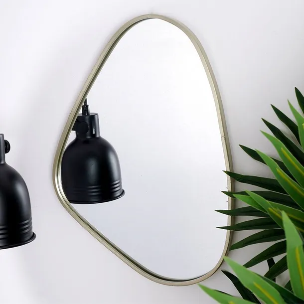 PRAKTYCZNE - Lustro ścienne w złotej ramie, posiada nieregularny kształt. Lustro ma wymiary 28 x 40 cm. Niezwykle efektownie prezentuje się w każdym pomieszczeniu.