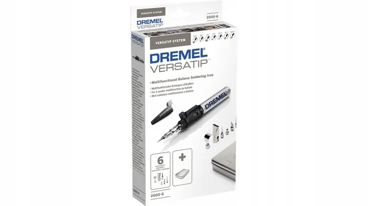 Lutownica Dremel VersaTip 2000-6 6w1 posiada 6 różnych zastosowań: lutowanie, topienie, cięcie w wysokiej temperaturze, kurczenie, wypalanie w drewnie (pirografia) i usuwanie farby. Ponadto czas palenia to aż 90 minut, a pojemność zbiornika to 17 ml / 9 g. Zasilana ciekłym butanem: gotowe do pracy zawsze i wszędzie. Lutownica umożliwia wybór temperatury odpowiednio do zastosowania, a także umożliwia wykonanie szczegółowych i skomplikowanych zadań.