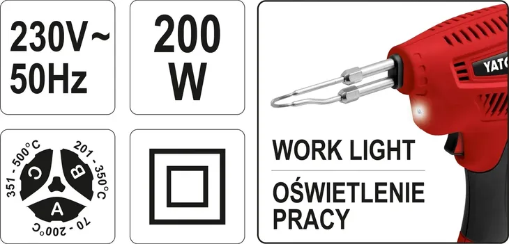 Jednorazowe przekroczenie czasu lutowania przy zachowaniu zasad dbałości o grot nie wpłynie negatywnie na dalsze działanie lutownicy, zwłaszcza jeżeli pozwolimy urządzeniu ostygnąć. W zbyt mocno rozgrzanym transformatorze spada jego sprawność a zatem i zdolność do rozgrzania grota do odpowiedniej temperatury. Przegrzewanie transformatora zwiększa również ryzyko jego uszkodzenia. Tradycyjny transformator do pracy ciągłej o tak dużej mocy musiałby ważyć kilka kilogramów, a gabarytowo przypominałby raczej małą spawarkę niż poręczną lutownicę o kształcie pistoletu. Idealne do codziennej pracy w warsztacie, na budowie lub w garażu.