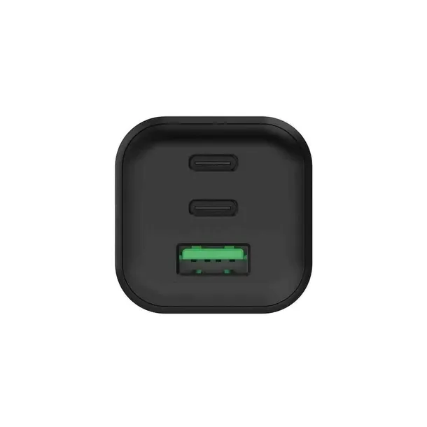 Kompaktowa ładowarka o mocy 65 W, wyposażona w dwa porty USB-C oraz port USB-A 18 W, umożliwia jednoczesne zasilanie trzech urządzeń. Mimo dużej mocy, ładowarka jest zaskakująco mała, bez problemu zmieścisz ją w małej przegródce plecaka czy torbie na laptopa. Wykorzystuje zaawansowaną technologię GaN, która umożliwia przepływ wyższej mocy przy zachowaniu znacznie niższej temperatury.