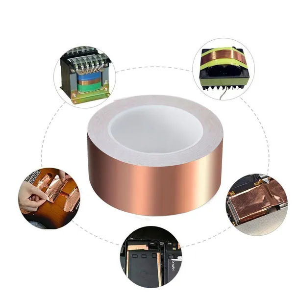 🌟Taśma z folii miedzianej pełni funkcję ekranowania elektrycznego i magnetycznego, która może ekranować zakłócenia elektromagnetyczne w silnikach, doskonale chroni sprzęt elektroniczny przed zakłóceniami elektromagnetycznymi w specjalnych sytuacjach, a także doskonale nadaje się do zmniejszania hałasu gitar elektrycznych.