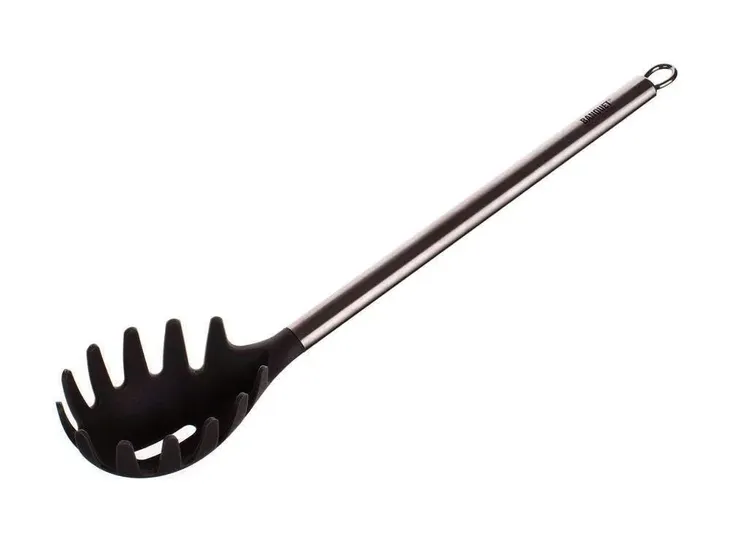 Łyżka do spaghetti AKCENT 32 cm, materiał - nylon, rękojeść stal nierdzewna 403, praktyczne oczko do możliwości zawieszenia. Naczynia łatwo się utrzymuje, można myć w zmywarce do naczyń.