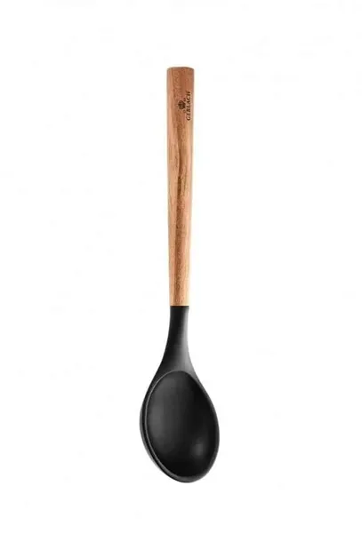 Łyżka Gerlach została wykonana z wysokiej jakości silikonu pozbawionego szkodliwych substancji (PTFE, nylon) oraz wytrzymałego drewna akacjowego. Jest odporna na wysokie temperatury i nie wydziela toksyn podczas mieszania gotujących się potraw (np. zup, sosów dań jednogarnkowych). Można jej używać zarówno w garnkach, jak i na patelniach z powłokami nieprzywierającymi (non-stick) bez ryzyka uszkodzenia ich powierzchni.