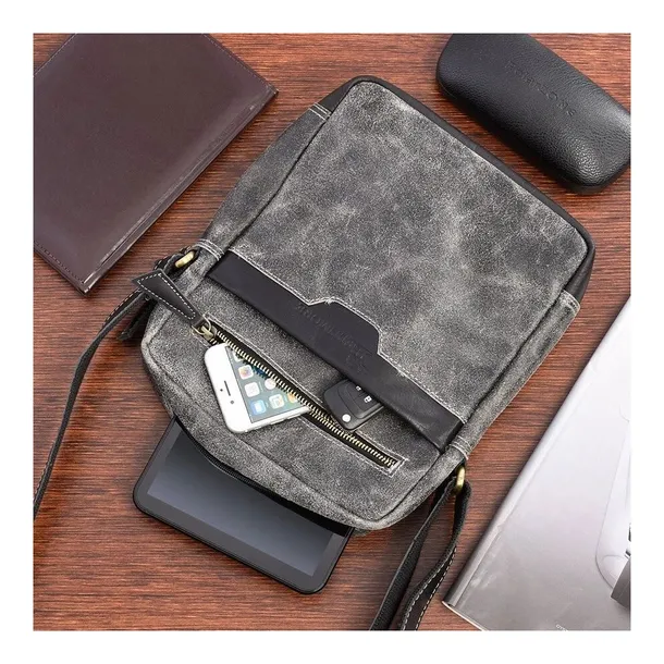Ekskluzywna torba męska stylizowana na vintage, uszyta z wysokiej jakości skóry naturalnej typu nubuk.