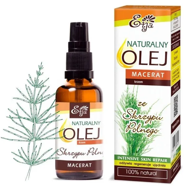 *Macerat ze skrzypu polnego ETJA powstaje w procesie maceracji ziela skrzypu polnego w nierafinowanym i tłoczonym na zimno oleju słonecznikowym. Posiada certyfikat jakości, kartę bezpieczeństwa i rejestrację w bazie CPNP. Produkt przebadany dermatologicznie.