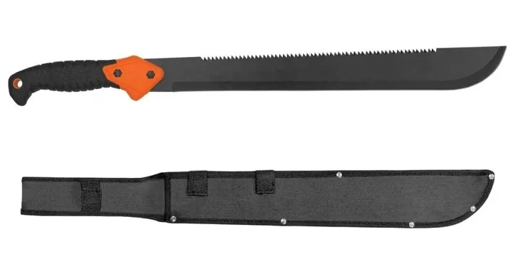 Maczeta 64 cm z piłą, ostrze 44 cm, nylonowe etui z oczkiem na pasek w cenie, wykonana ze stali nierdzewnej.