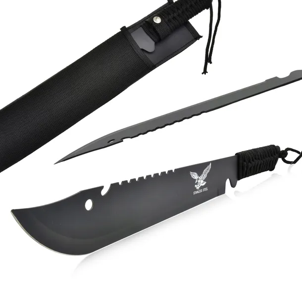 Głownia pokryta czarną, matową powłoką epoksydową o właściwościach antykorozyjnych oraz skutecznie eliminującą wszelkiego pochodzenia odblaski i refleksy świetlne - rękojeść opleciona sznurkiem, otwór umożliwiający przewleczenie linki zabezpieczającej przed przypadkowym wypadnięciem maczety z dłoni - to nie wszystkie atuty maczety - o reszcie przekonasz się sam!