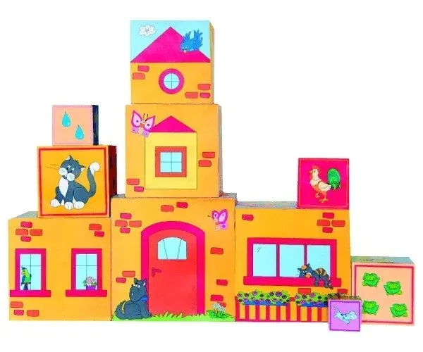 - można również ułożyć kostki w inny sposób tak, aby powstał domek