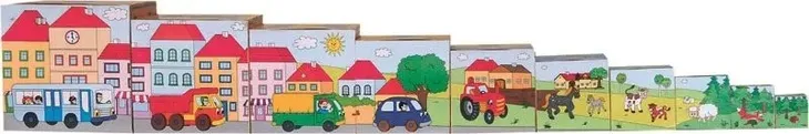 Układanka kubeczki to znakomita zabawka pozwalająca ćwiczyć koordynację ruchową oraz zręczność. Małe dziecko bez końca może wkładać mniejsze kubeczki do większych. (każdy klocek nie ma jednej ścianki w ten sposób klocki zjamują mało miejsca po włożeniu wszystkich do środka). Ten zestaw to również ciekawa układanka. Układając wieżę dziecko będzie ćwiczyć koordynację ręka-oko, a układając obrazek logiczne myślenie i kojarzenie.
