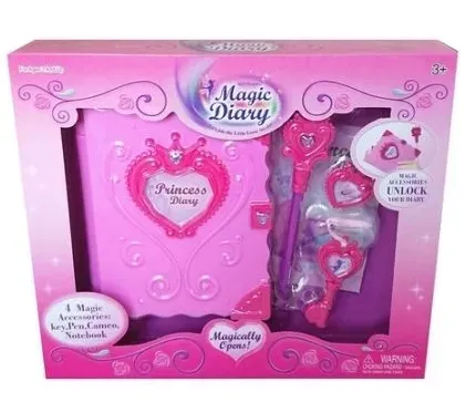 Zestaw zawiera pamiętnik zamykany na kluczyk, wisiorek, notesik i długopis.