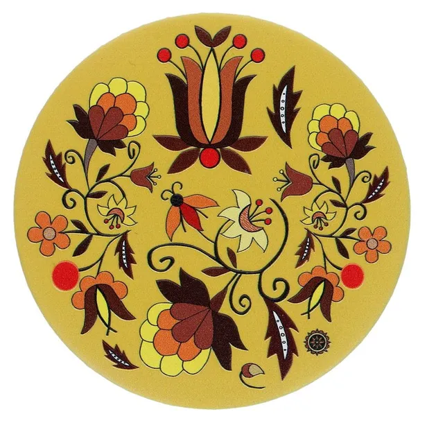 Piękny, okrągły duży magnes ze wzorem haftu borowiackiego. Niezwykły wzór folkowy o wypukłej, eleganckiej, strukturze nadającej ciekawy efekt trójwymiaru. Niezwykle wyraziste, kolorowe polskie wzornictwo ludowe podkreśli charakter Twojej kuchni. Magnes świetnie prezentuje się na lodówce i na każdej innej metalowej powierzchni. To piękna folk ozdoba, świetna na prezent oraz jako pamiątka z Polski.