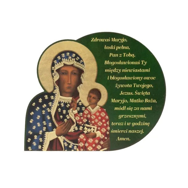 Magnes z modlitwą "Zdrowaś Maryjo, łaski pełna...." o wymiarach 7,5 x 6,5 cm