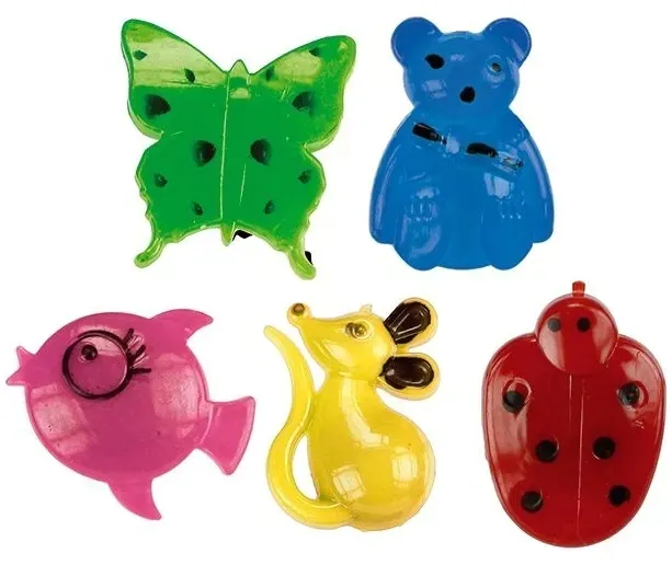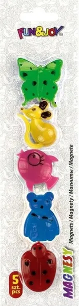 Do tablic magnetycznych średnica: 40 mm kształt: zwierzątka: motyl, myszka, rybka, misiu, biedronka pakowane po 5 szt na blistrze