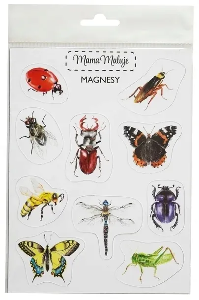 Elastyczne i miękkie magnesy o dużej sile przyciągania. Dobrze trzymają się różnych powierzchni magnetycznych. Stworzone na podstawie ręcznie malowanych ilustracji akwarelowych. Wspierają rozwój kreatywności i wyobraźni. Wymiary arkusza: 14x20 cm
